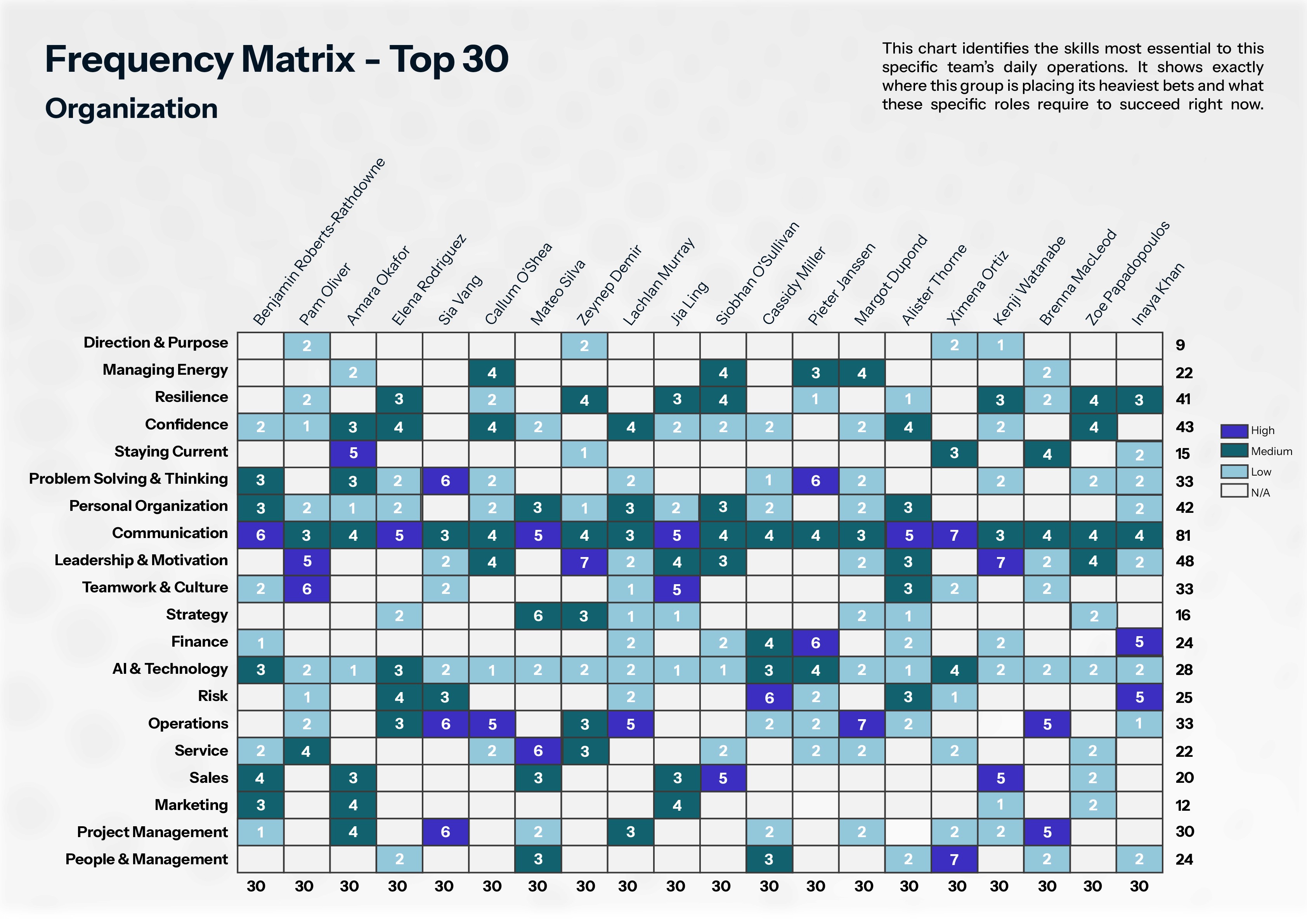 Understand what makes your best teams and people succeed. Map the skill clusters driving top performance to set capability benchmarks, elevate average performers, and your scale operational excellence.