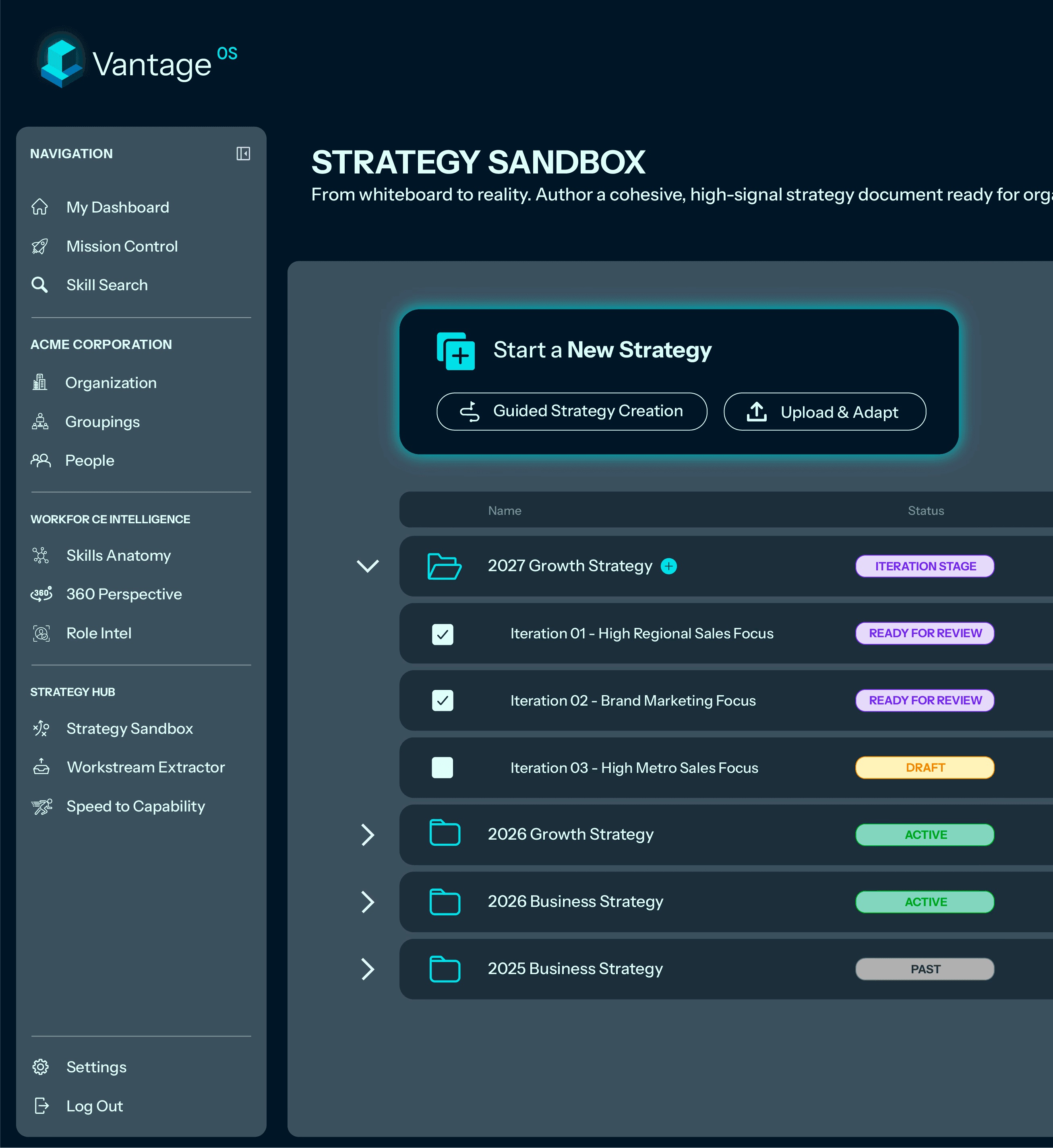 Use the VantageOS Intelligence Engine to audit your clients' workforce and deliver evidence-based transformation strategies.